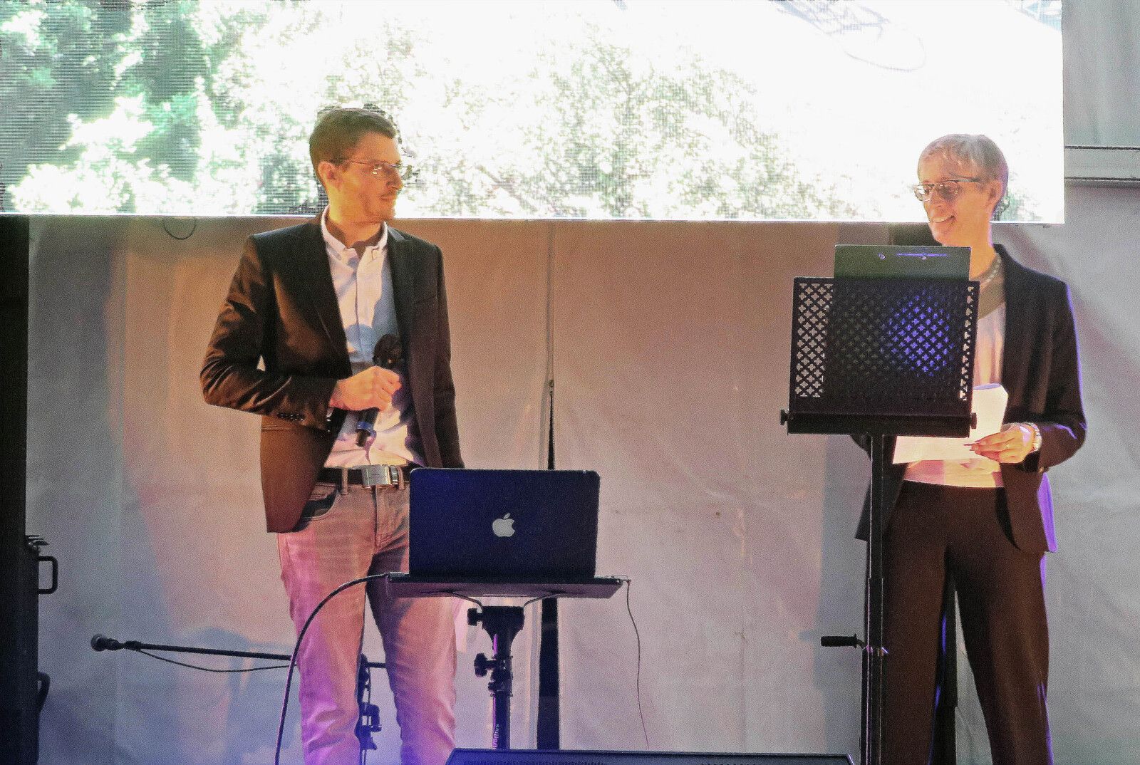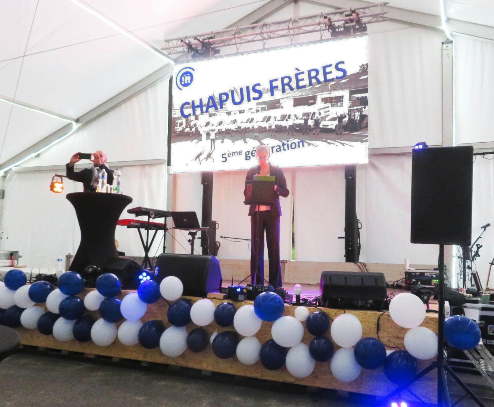 Sur le podium du chapiteau, Caroline Chapuis, la Présidente de "Chapuis Frères" a remercié les nombreux clients, les amis de l'entreprise pour leur présence chaleureuse...