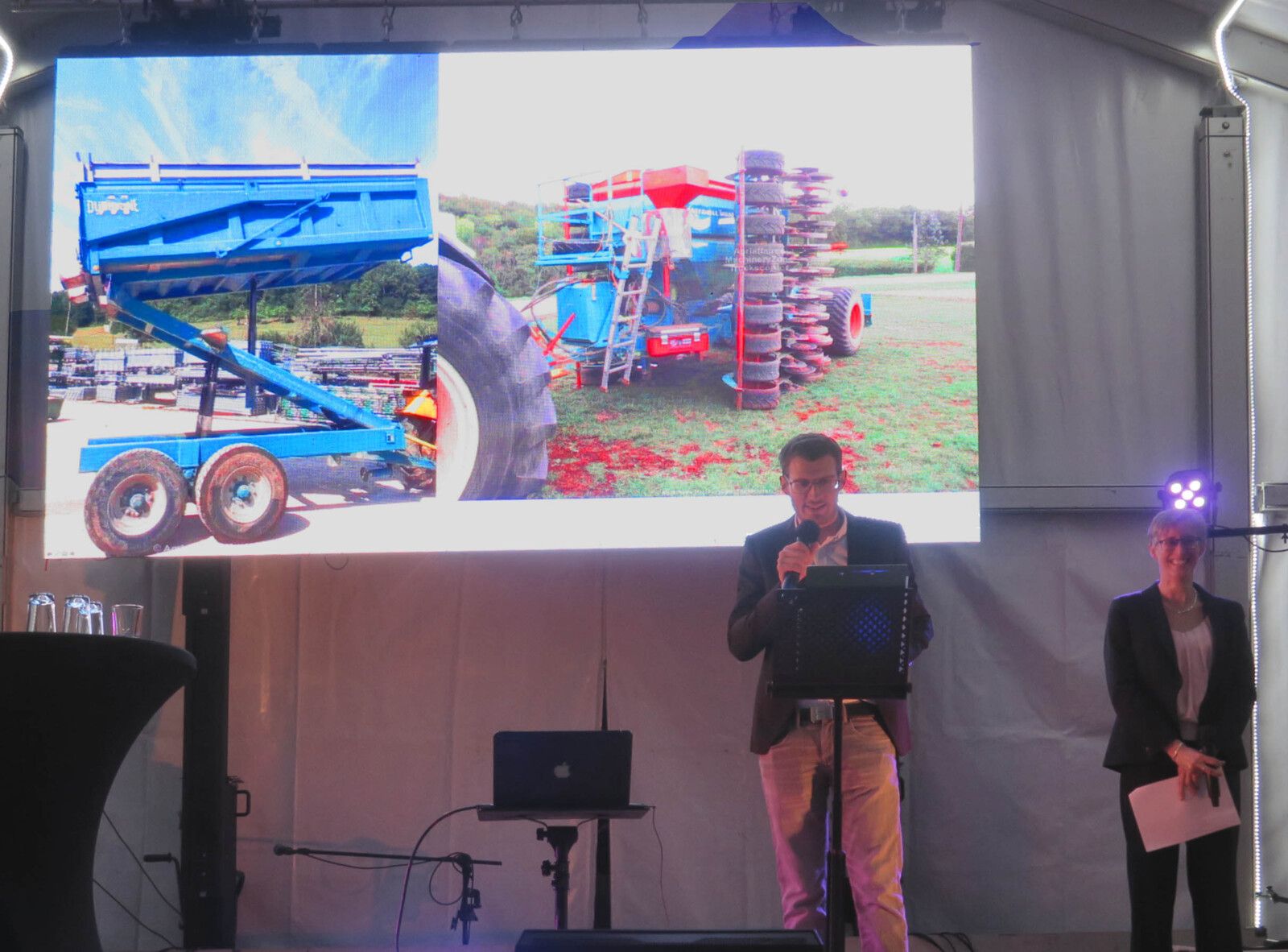 Devant le chapiteau où allait avoir lieu une cérémonie bien sympathique, on pouvait voir de nombreuses machines agricoles vendues par l'entreprise.