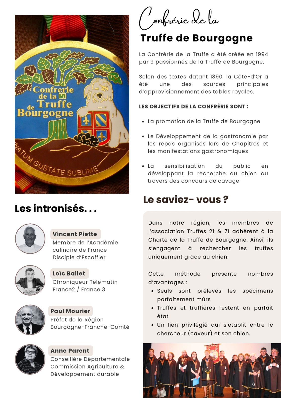 Son grand Maître, Jean-Louis Mangel, a rappelé que la Confrérie , fondée en 1994 a pour but de valoriser la truffe de Bourgogne, la "Tuber Uncinatum", le diamant noir de notre région.