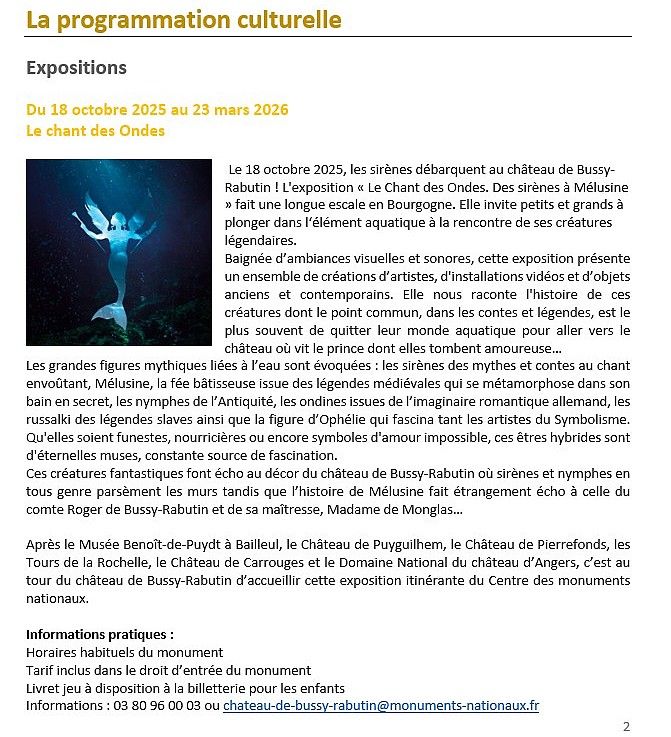 Le château de Bussy Rabutin propose une belle animation culturelle pour les vacances de Toussaint Publié le 31 Octobre 2025 [Haut]