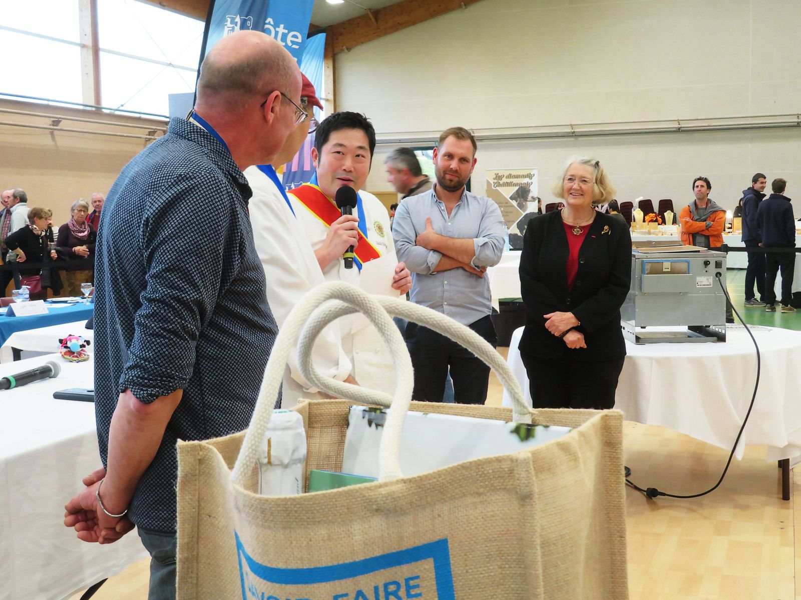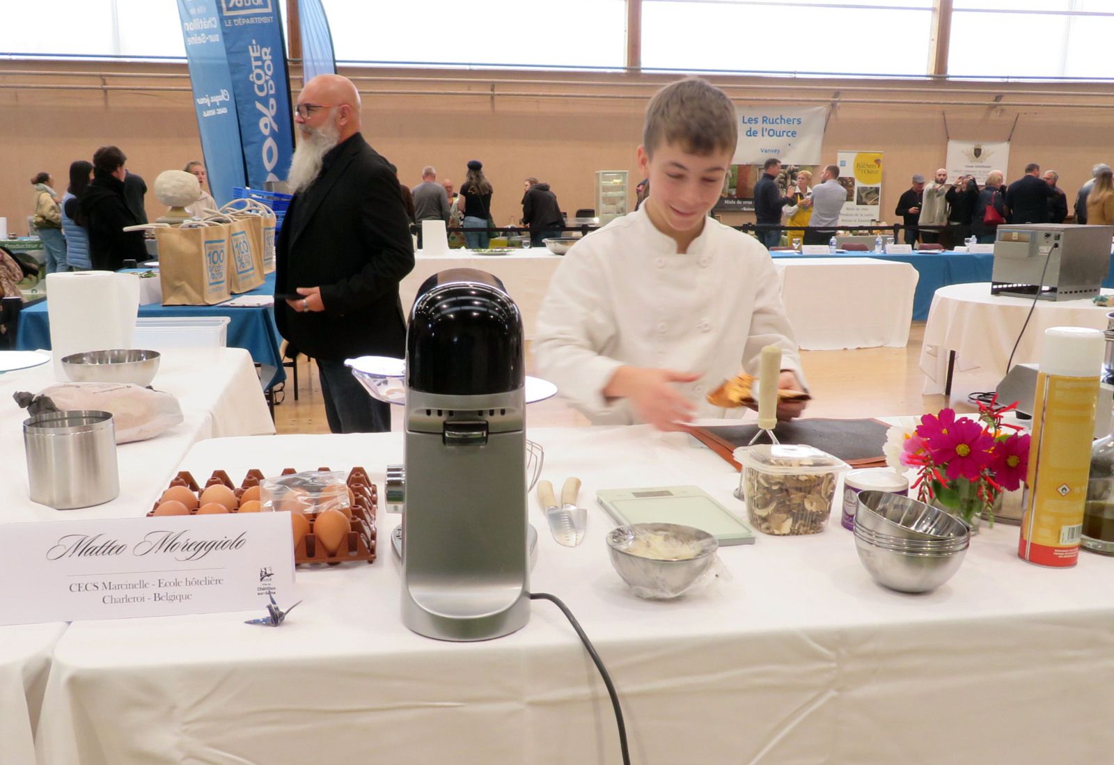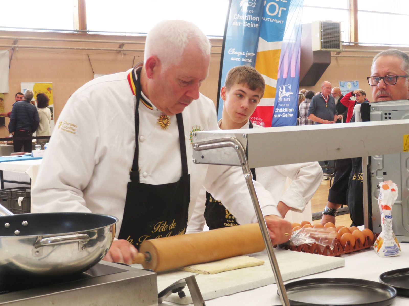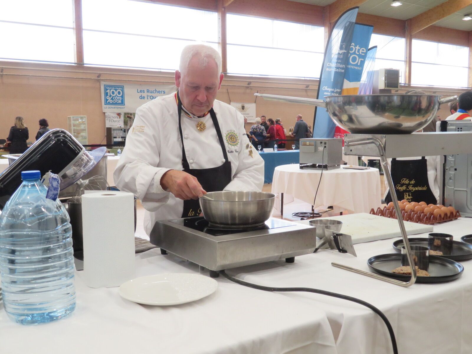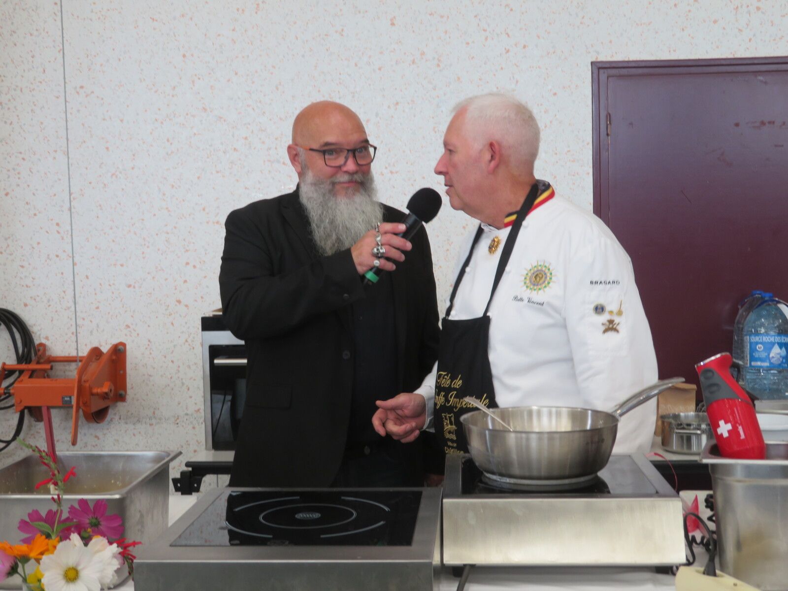 De 14h à 15 heures, Vincent Piette membre de l'Académie Culinaire de France , disciple d'Escoffier, a expliqué à Yannick Fanet, le super animateur de la Fête Impériale de la Truffe, comment il allait réaliser une spécialité culinaire née du mariage entre Bruxelles et Châtillon-sur-Seine !