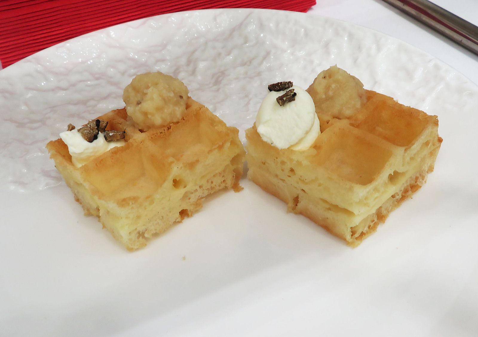 C'étaient des œufs brouillés à la truffe sur leur gaufre bruxelloise et son caviar d'artichaut....un délice !