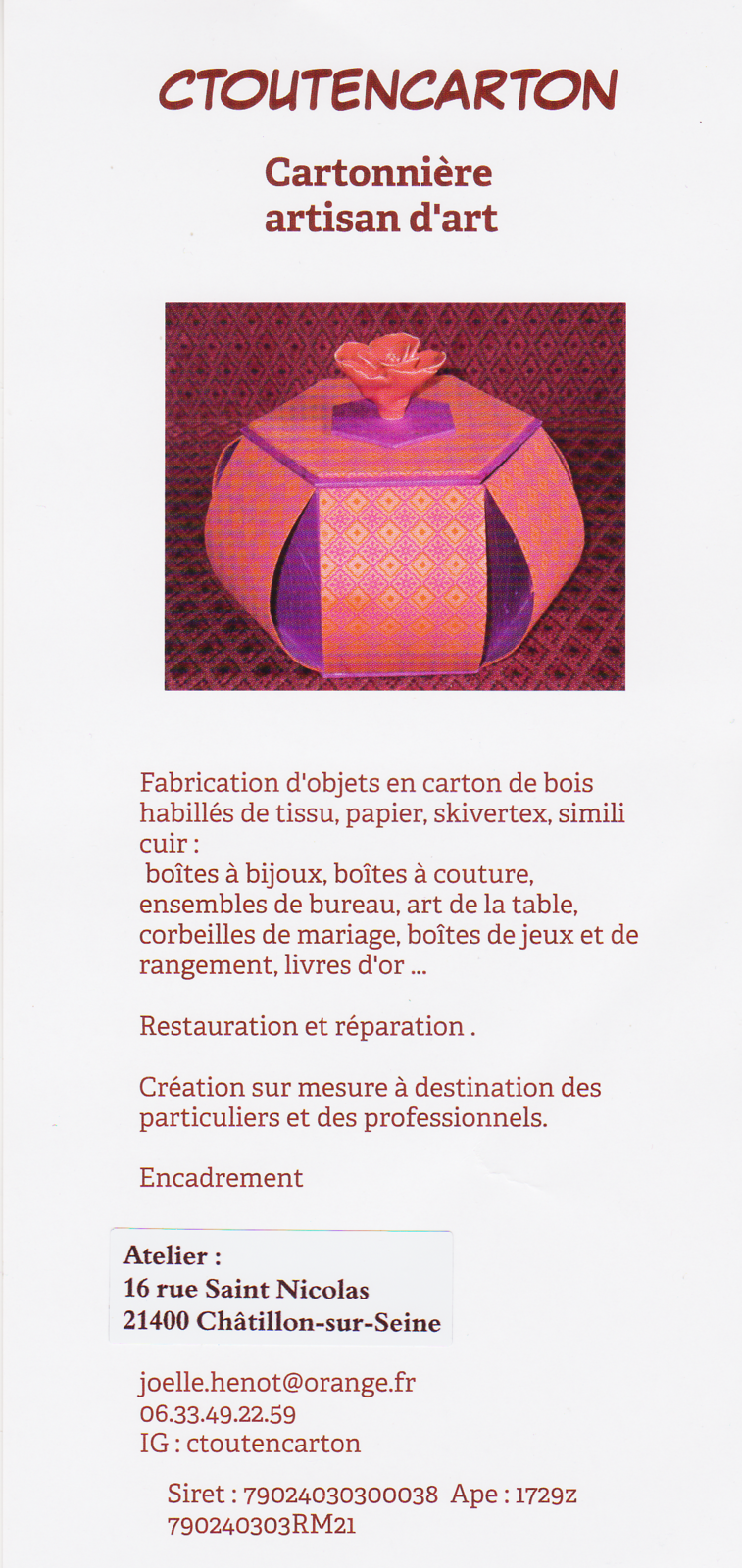 Joëlle Hénot, cartonnière de grand talent, avait ouvert un magasin il y a quelques années rue Maréchal Leclerc. On pouvait la voir travailler et admirer toutes ses superbes réalisations.