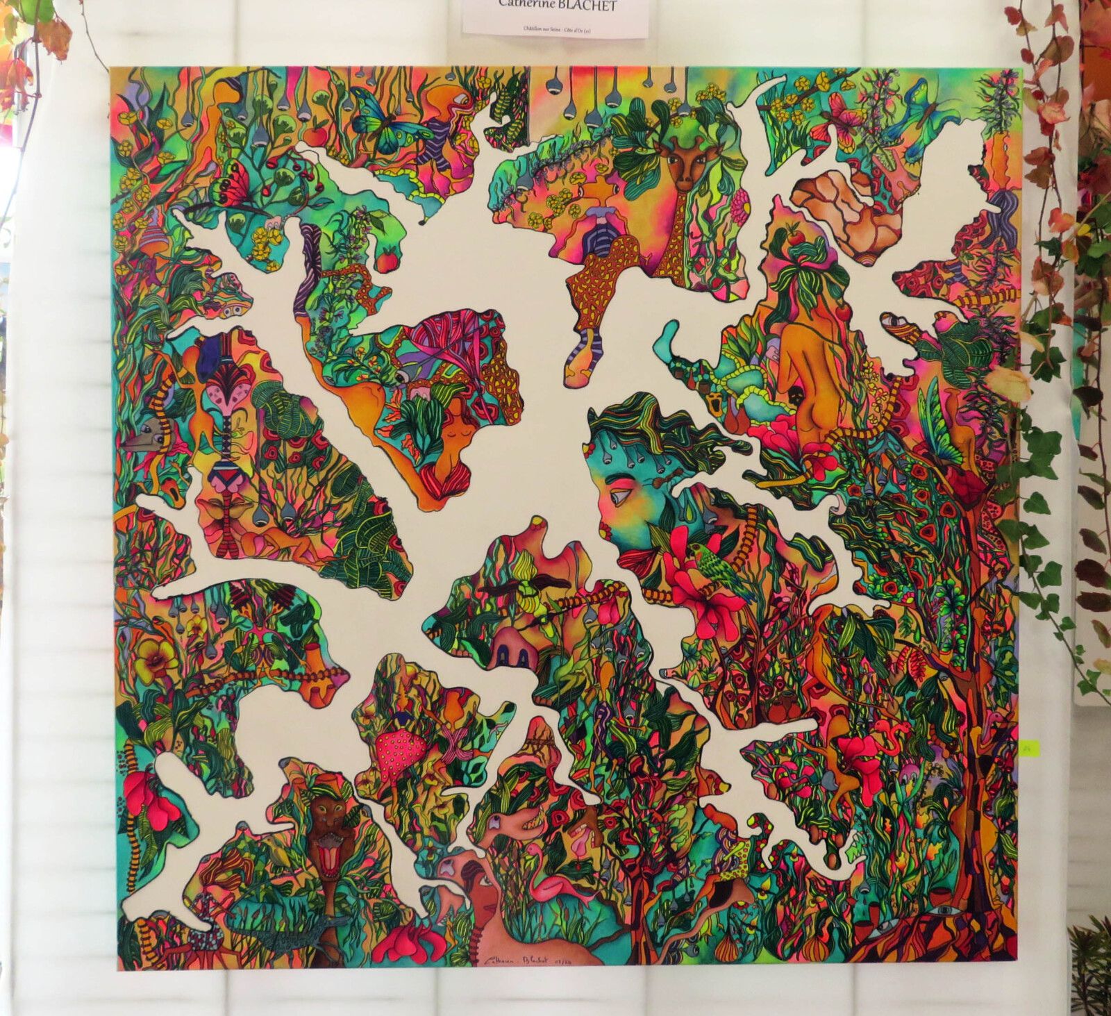 Ce tableau a été réalisé par les enfants des écoles avec les conseils de la peintre invitée d'Honneur, Dominique Mauplot