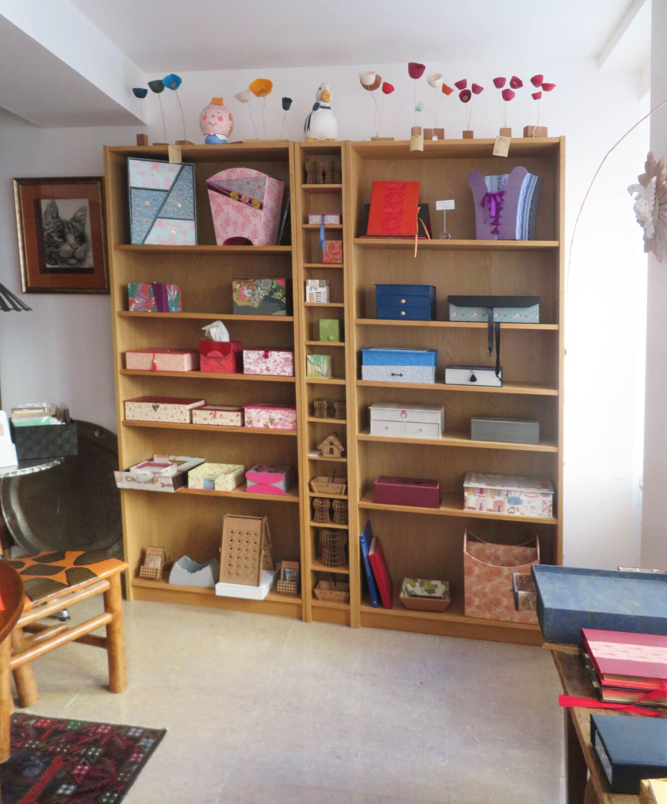 Sur les étagères on peut admirer l'étendue du travail de la cartonnière....