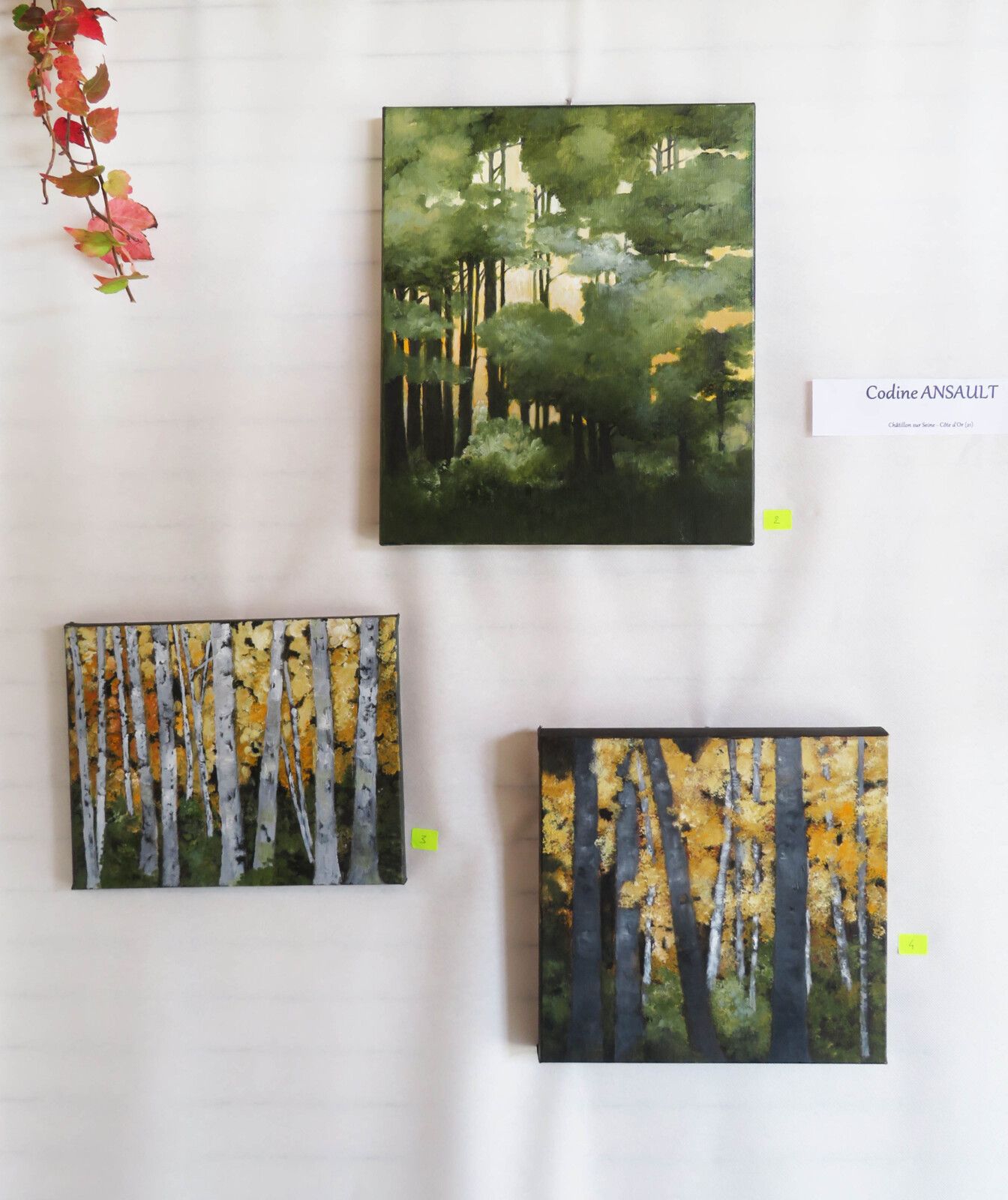 Voici les tableaux qu'elle a exposés dans la salle des Fêtes de Chamesson :