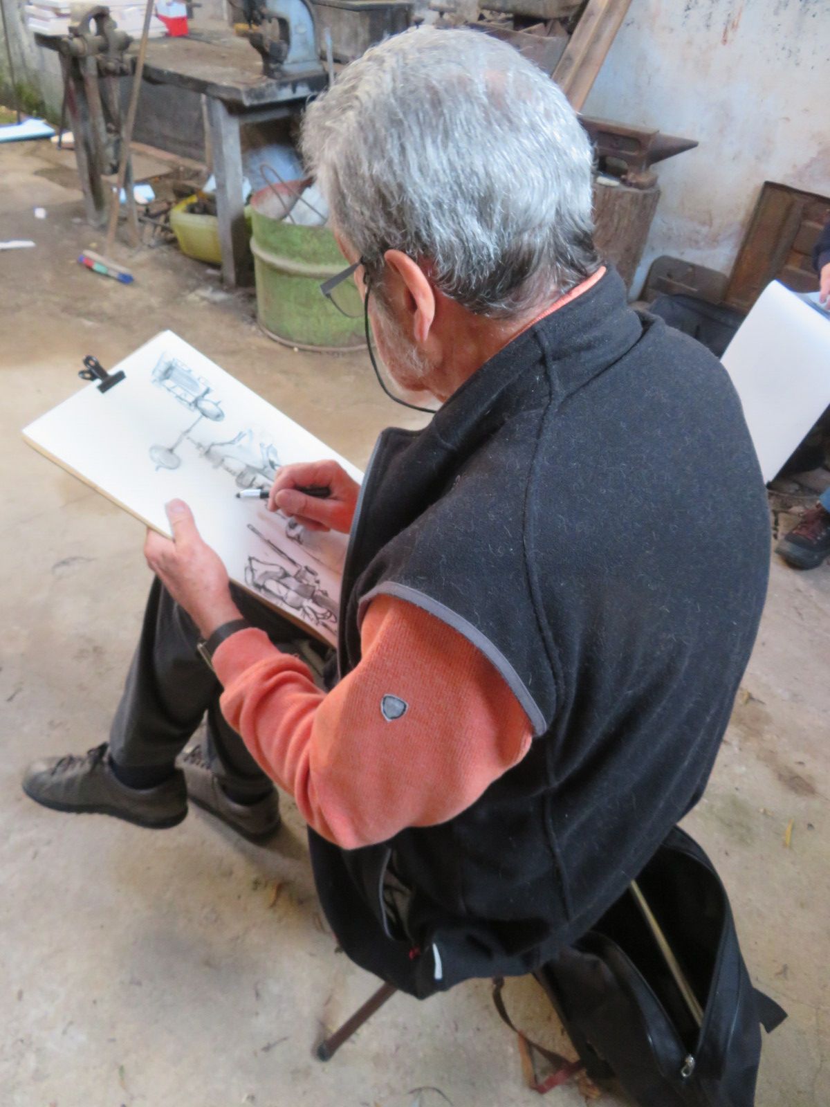 L'après-midi de vendredi, deux peintres , Jean Lochu et Philippe Chaberty, se sont rendus à l'intérieur de la pointerie de Chamesson, où ils ont dessiné les anciennes machines....