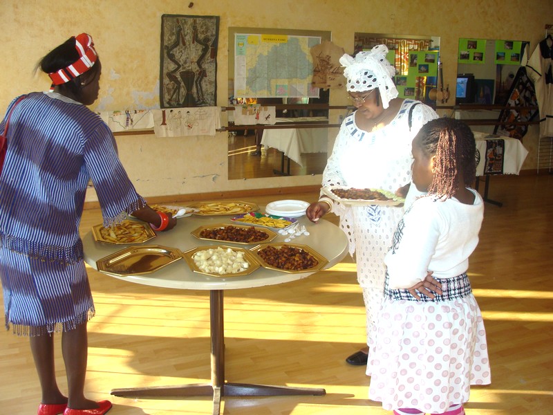 Oh le joli et délicieux buffet de spécialités africaine qui nous fut proposé !Beignets,pâtisseries à base d'igname (que nous connaissons sous forme de tapioca),fruits séchés ou confits, comme des bananes -plantains,noix de coco etc...